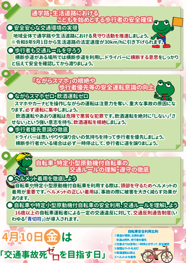 - 「ながらスマホ」の根絶や歩行者優先等の安全運転意識の向上